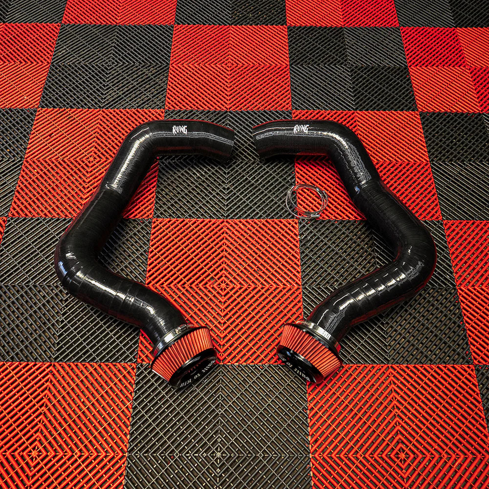 Rvng Raceworks intakes are engineered to elevate airflow, boost horsepower, and add a sleek aesthetic to your engine bay. Built with 5-layer reinforced ply silicone featuring oil-resistant lining and durable aluminum hose connections, our intake system surpasses OEM performance in every aspect.